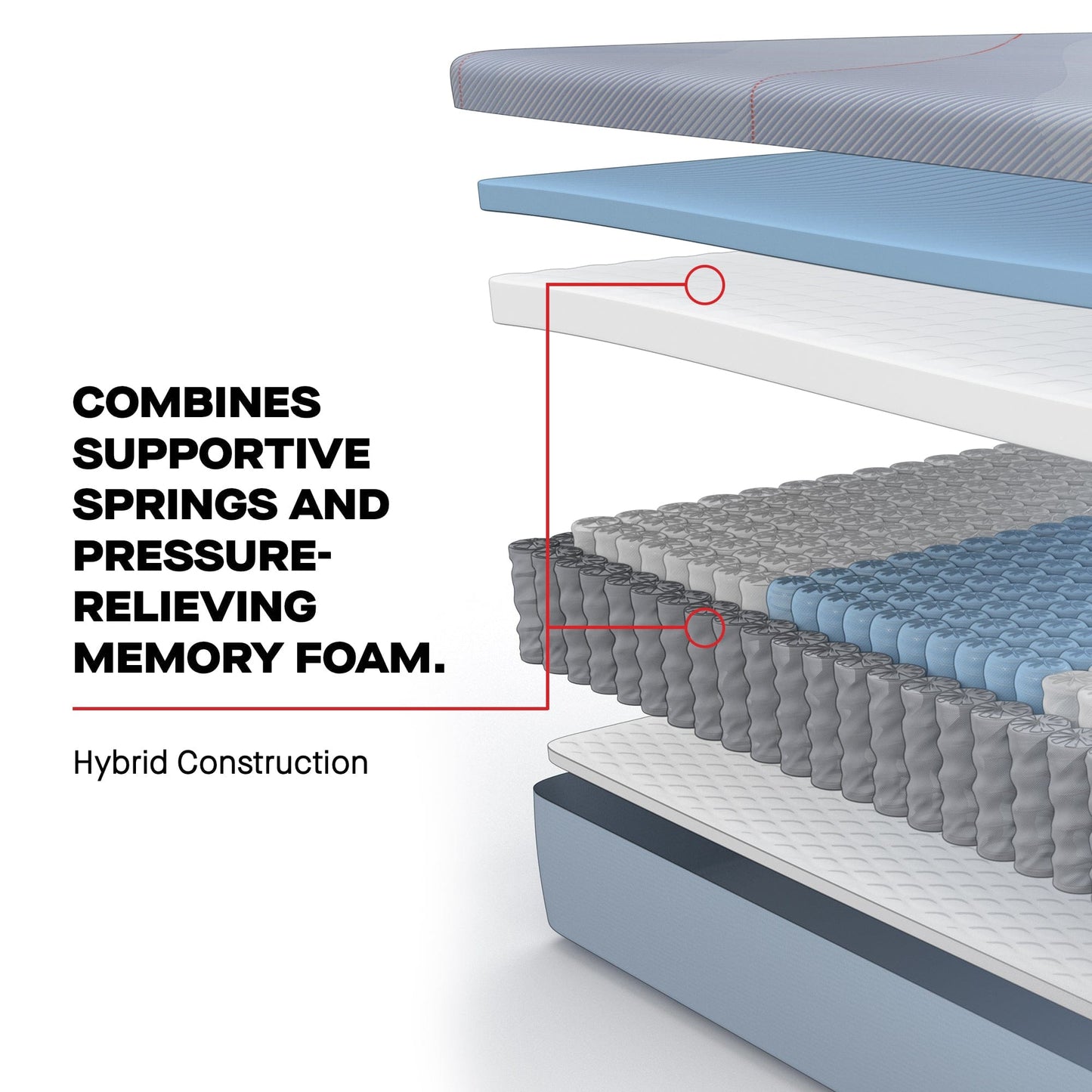 This hybrid design layers pressure-relieving gel memory foam on top of a supportive coil system, giving you the best of both worlds: firm, adaptive support and breathable comfort.