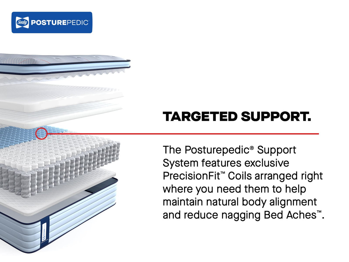 Many mattresses offer one or the other - but the Sealy Posturepedic® Medina II Medium Euro Pillow Top Mattress gives you both. The plush pillow top relieves pressure on your shoulders and hips, while the targeted coil system keeps your spine in proper alignment all night long.